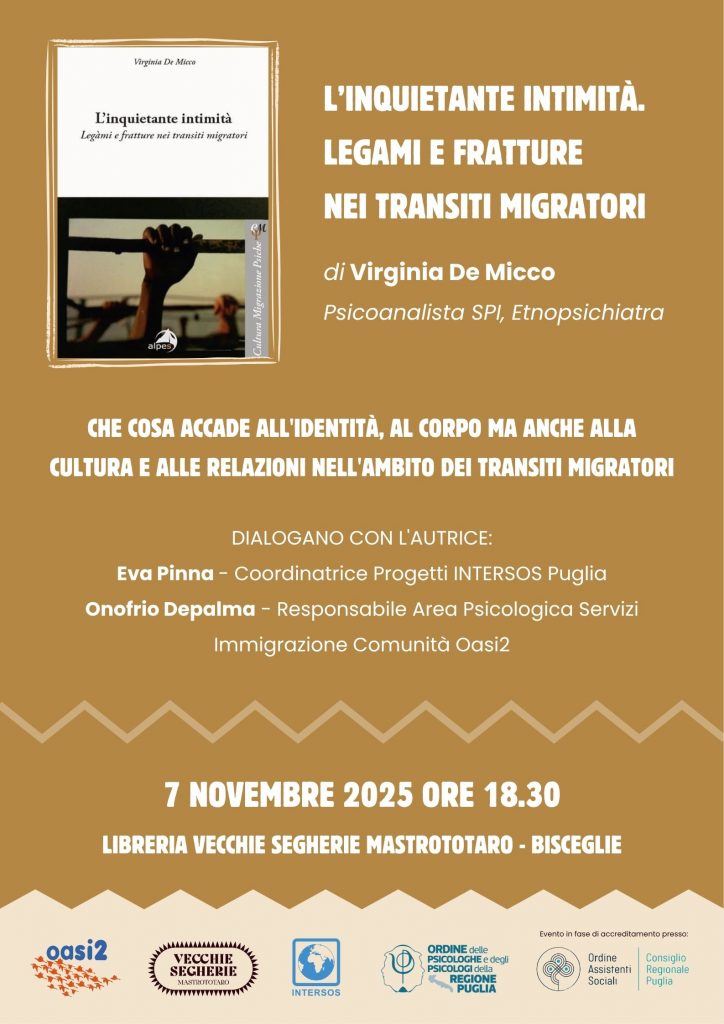 ID 105775 Comunità Oasi2 San Francesco – Simposio “Legami e rotture nei transiti migratori”, 7 novembre Bisceglie, n° 2 crediti formativi
