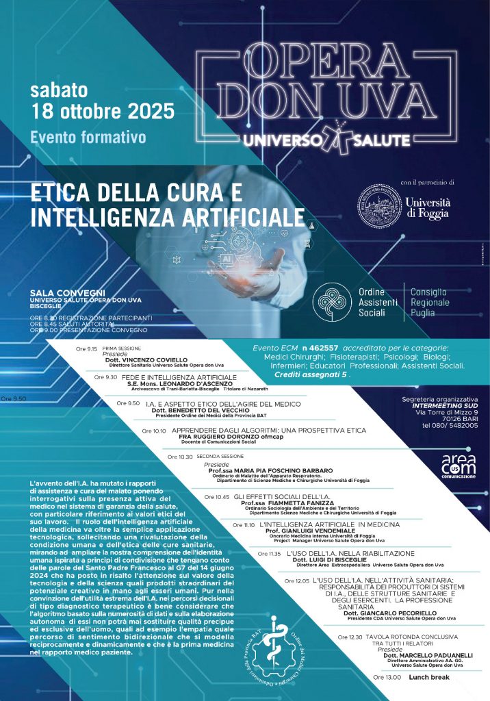ID 105951 Opera Don Uva – Convegno “Etica della cura e intelligenza artificiale”, 18 ottobre Bisceglie, n° 4 crediti formativi