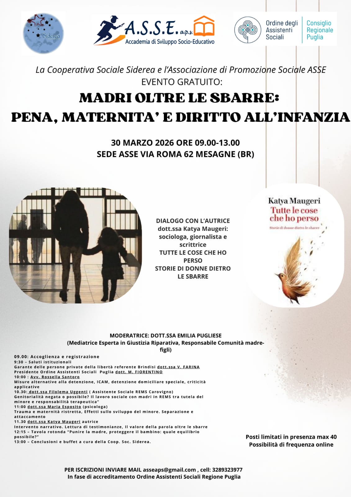 ID 108461 Asse Accademia di sviluppo socio educativo – Convegno “Madri oltre le sbarre: pena maternità e diritto all’infanzia”, 30 marzo 2026, modalità mista (in presenza e online), n° 3 crediti formativi e n° 1 credito deontologico.