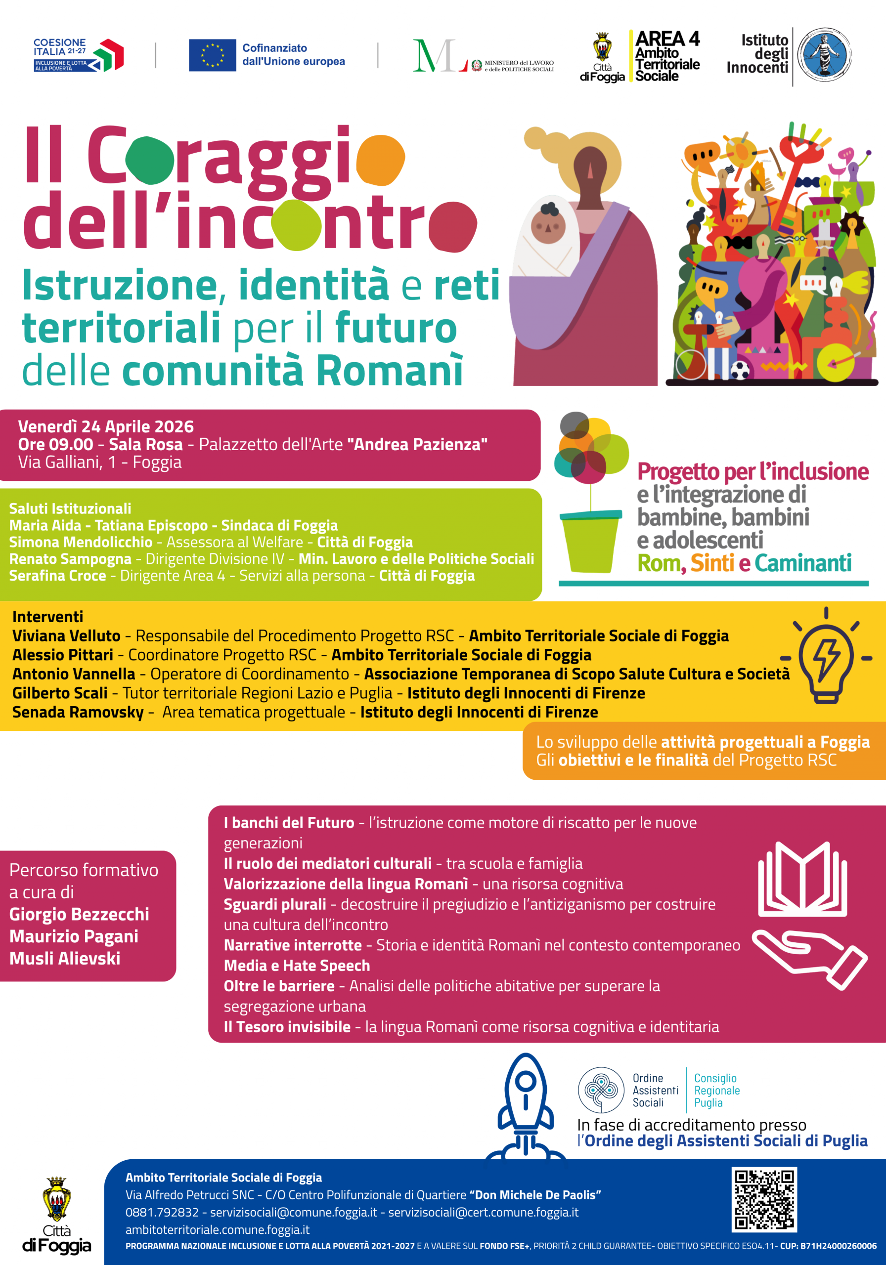 ID 109294 Comune di Foggia, 24 aprile presso Sala Rosa Foggia, Convegno “Il Coraggio dell’incontro – Istruzione, identità e reti territoriali per il futuro delle comunità Romanì”, 3 crediti formativi e 1 credito deontologico